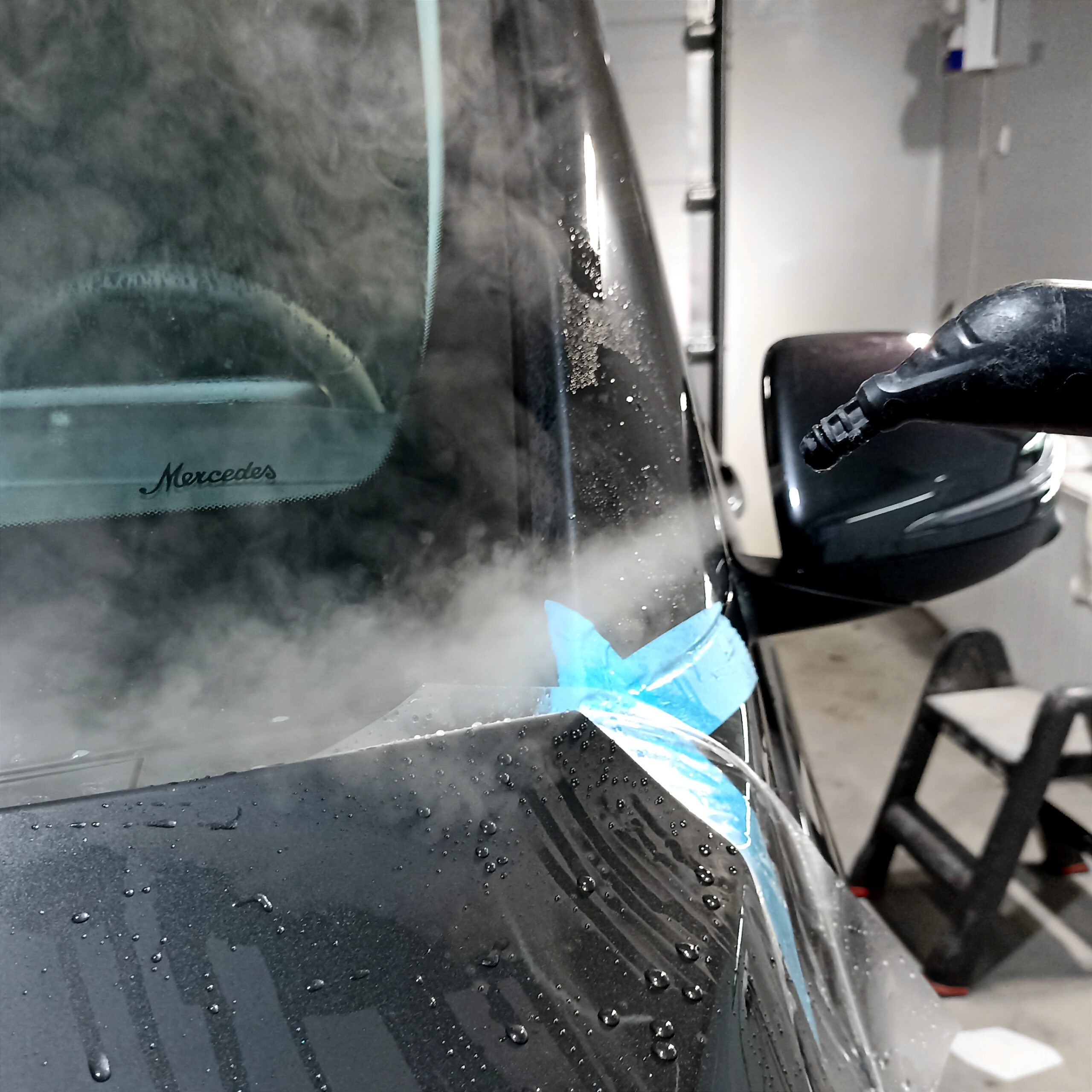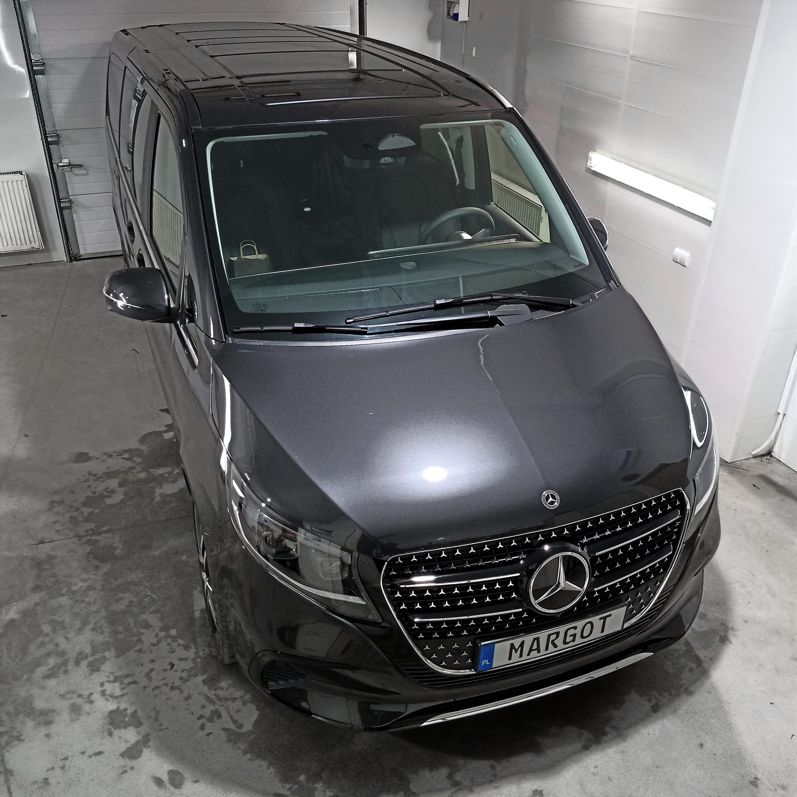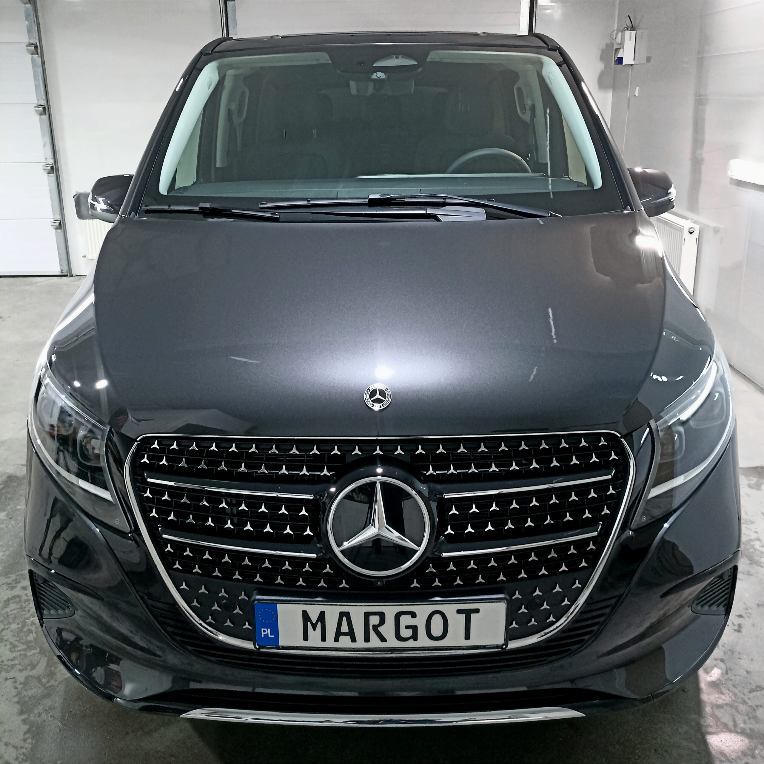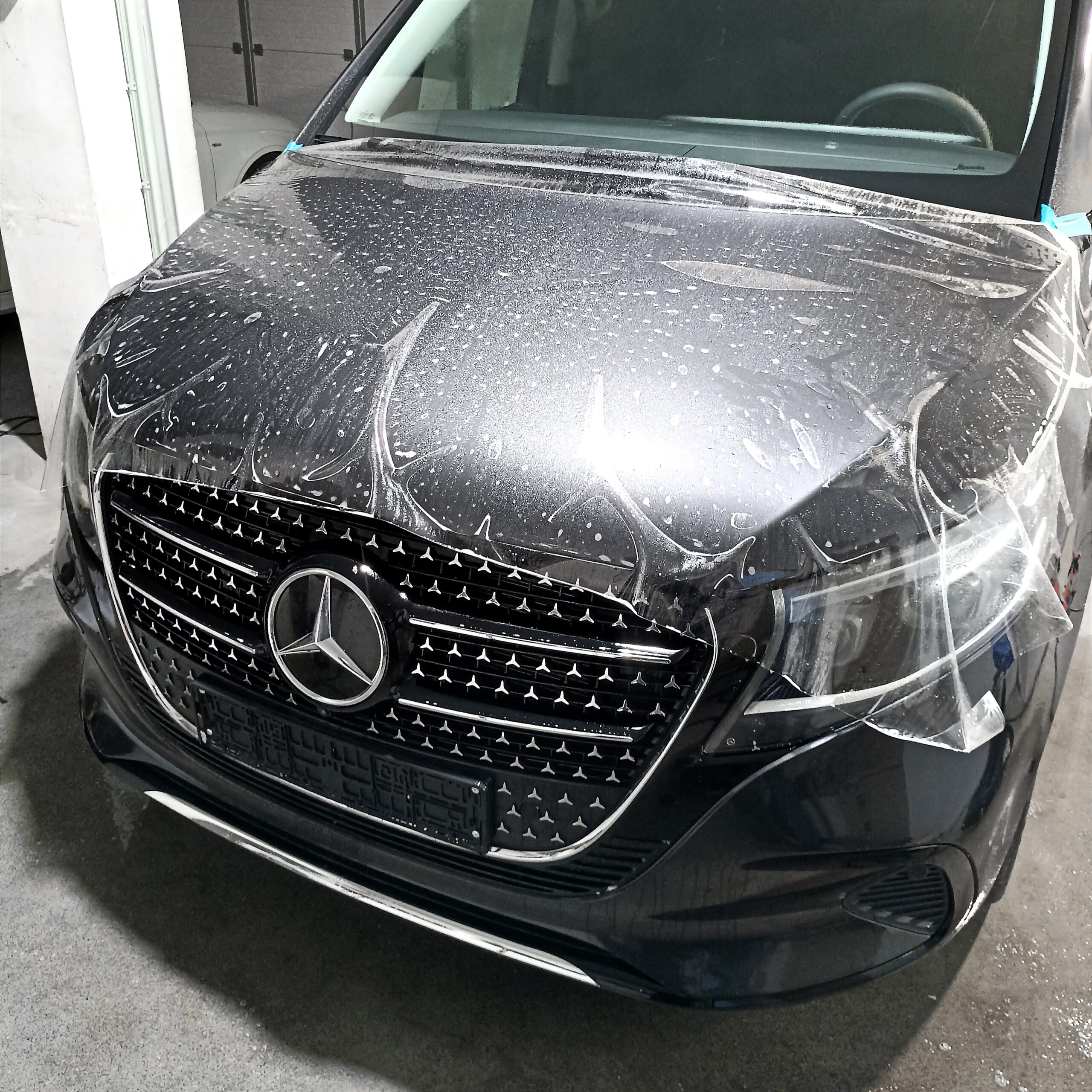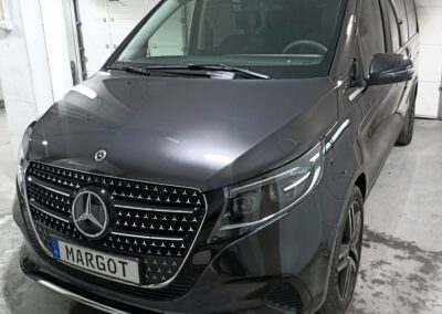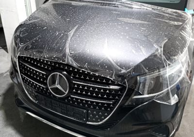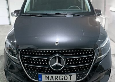 Mercedes V- Klasa Nowy Mercedes V Klasa został zabezpieczony folią ochronną PPF w pakiecie full-front plus newralgiczne miejsca (wnęki klamek, próg bagażnika). Dodatkowo zabezpieczony został ekran wewnątrz samochodu folią matową na której nie widać odcisków palców.